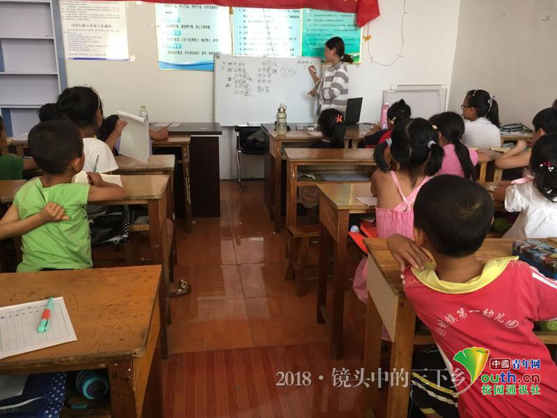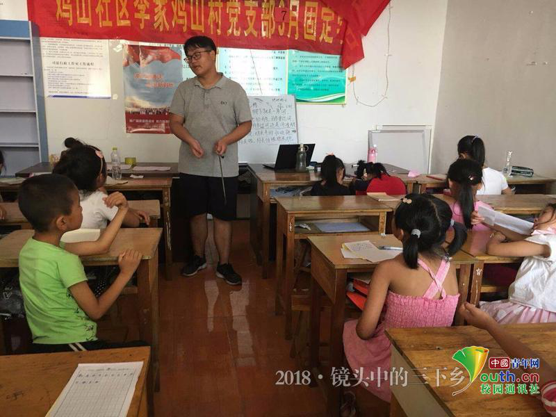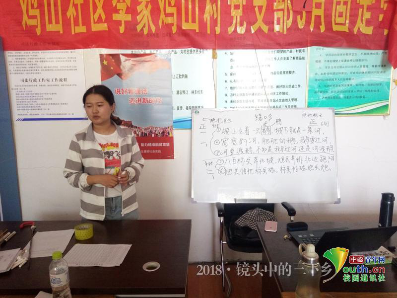 图为实践队员在教学生读绕口令。中国青年网通讯员 孙君 摄