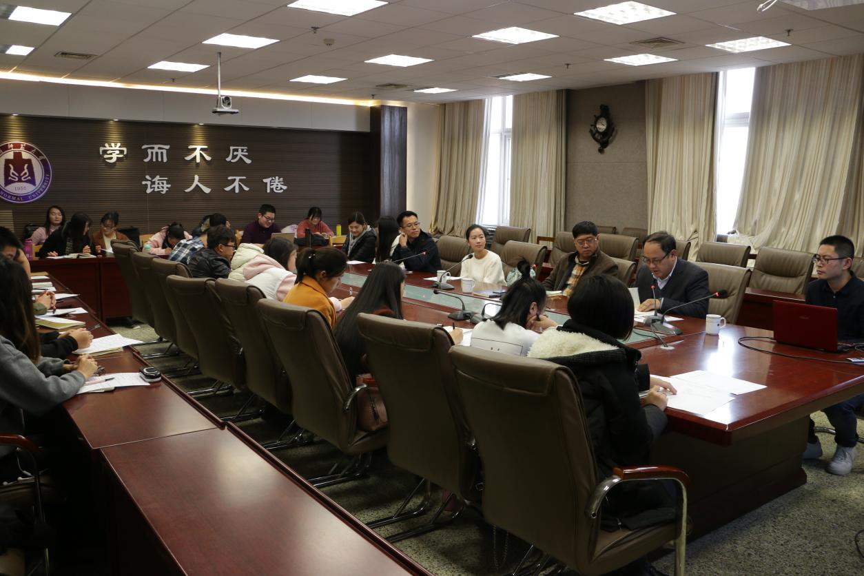 第一期研究生学术沙龙。公共管理系主任徐自强老师、哲学系主任林祥磊老师、研究生王兴红分享了学术心得,副院长林士俊老师主持本次活动。
