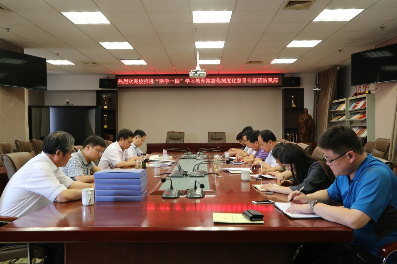 6月12日下午,校党委副书记马东骅一行莅临我部,对我部党委推进“两学一做”常态化制度化进行督查。学部党委书记张立兴对学校督导莅临我部督查表示欢迎,并向领导简要介绍了马克思主义学部成立一年多来“一部两院”的运作模式以及学部党委发挥的作用。
