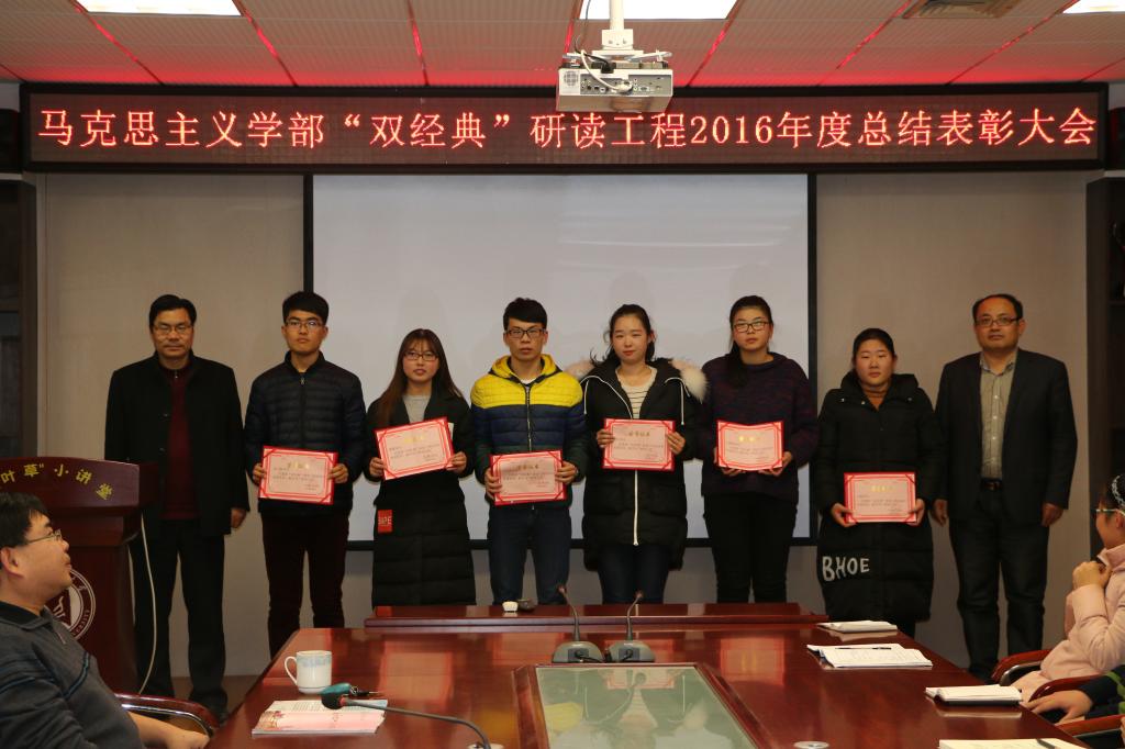 12月22日,马克思主义学部“双经典”研读工程2016年度总结表彰大会在JC909顺利召开。学部党委副书记刘进,马克思主义学院副院长周智,色情论坛