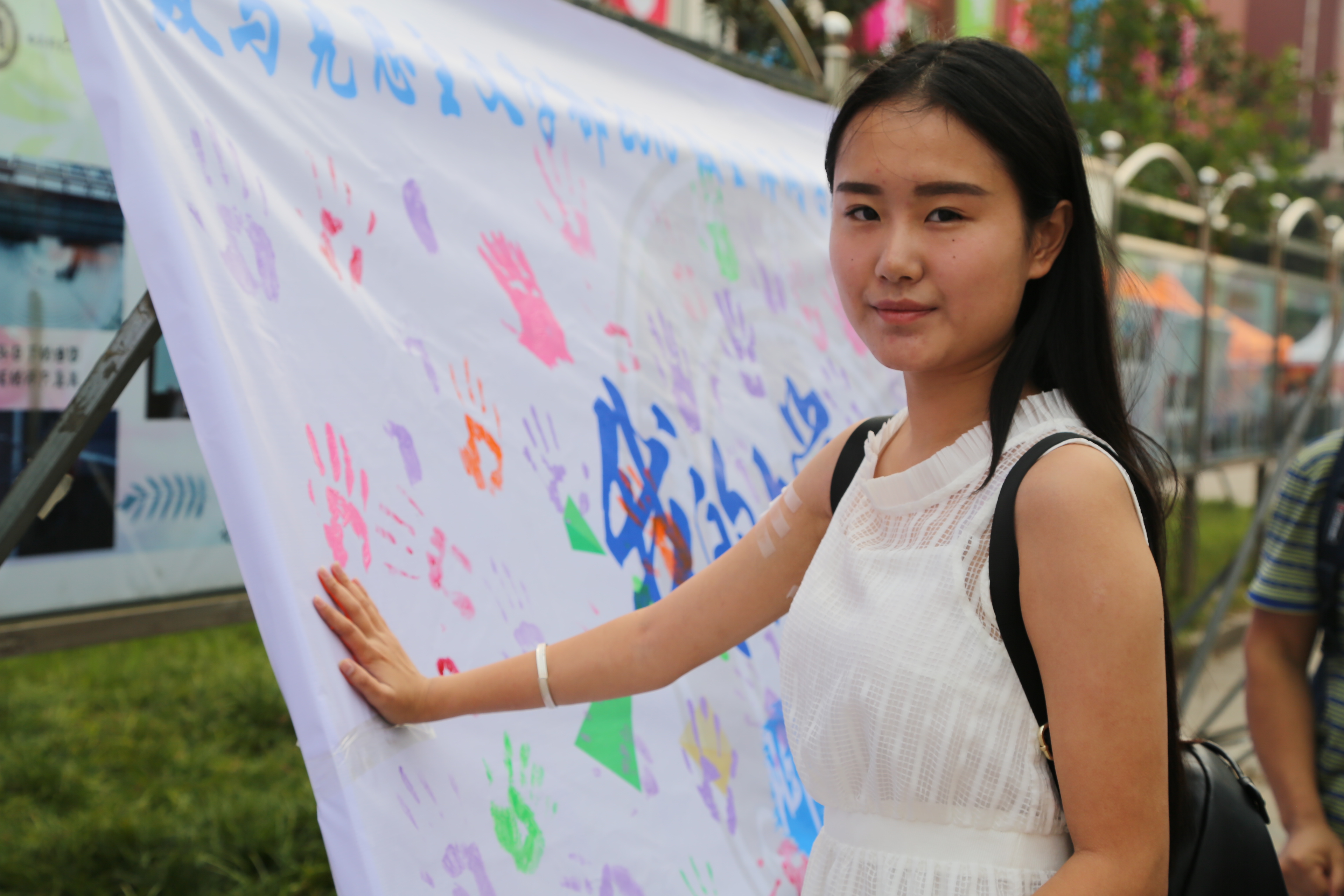 在迎新现场,迎新帐篷后方除了摆放着的学部简介和考研光荣榜,更引人注目的是一块布满大小不一、五颜六色手印的展板,新生可以用学部准备的可洗颜料涂在手上并印在展板上,寓意大学生活要脚踏实地、一步一个印记。恰逢教师节,学部推出“微信上墙”活动,师生积极投稿“上墙”,表达对新生的欢迎和对老师的祝福。独具匠心的“学生证”留念,也为新生的人生旅途加上“大学生”的认证。