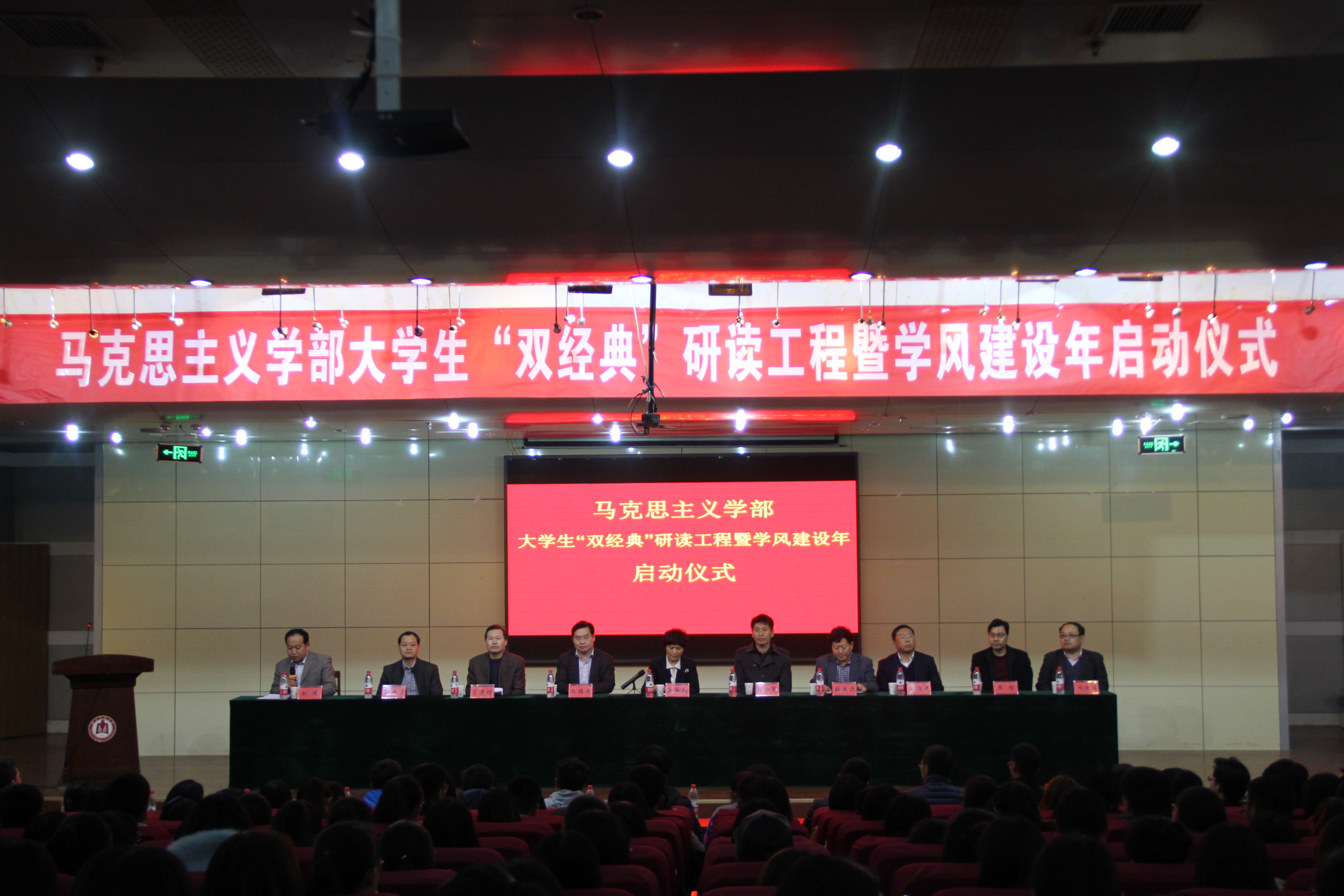 马克思主义学部主任、马克思主义学院院长李安增在讲话中简要介绍了去年十月学校成立马克思主义学部的背景、学部成立后的学院设置、机构运转机制以及取得的成就,令与会师生欢欣鼓舞。同时,他对学部党委实施“双经典”研读工程的创意与推行表示赞赏,并表示将在人力物力财力上全面给予支持,力求做大做强做好。