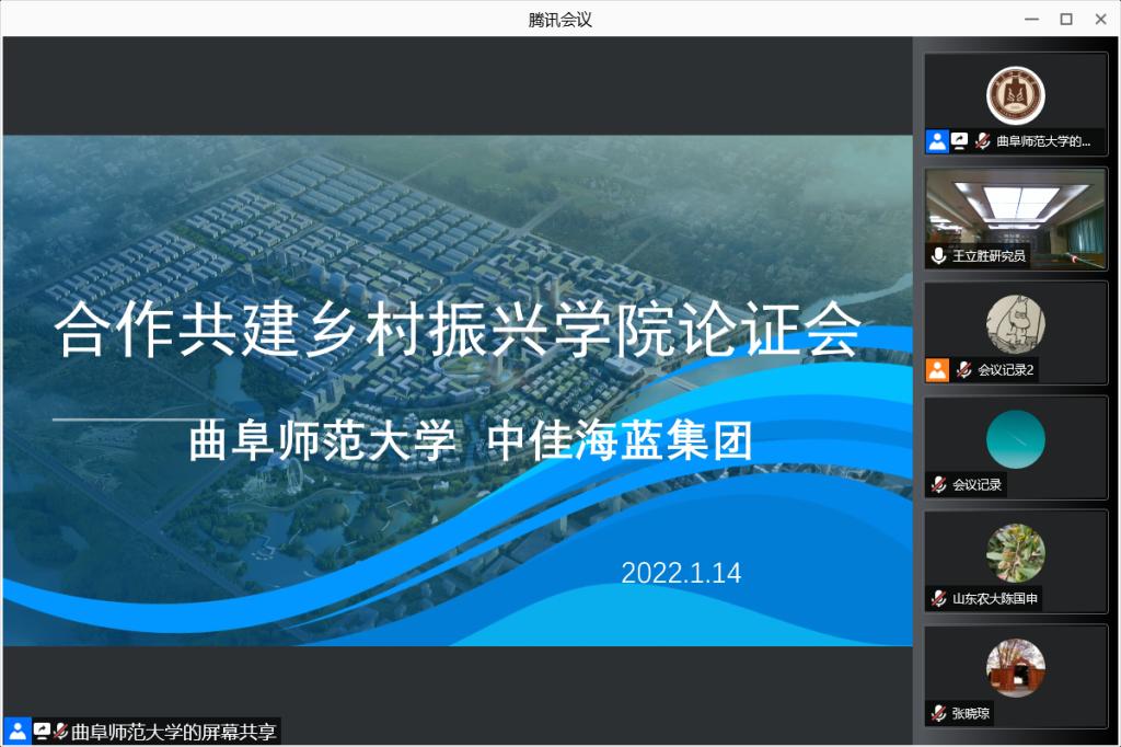 与中佳海蓝集团合作共建乡村振兴学院论证会的必要性与可行性展开论证,发表见解。并通过列举各地乡村振兴学院建设的典型做法,结合曲阜师大的办学实际和自身特色,纷纷就双方共建乡村振兴学院的目标定位、模式路径、发展方向等问题建言献策。