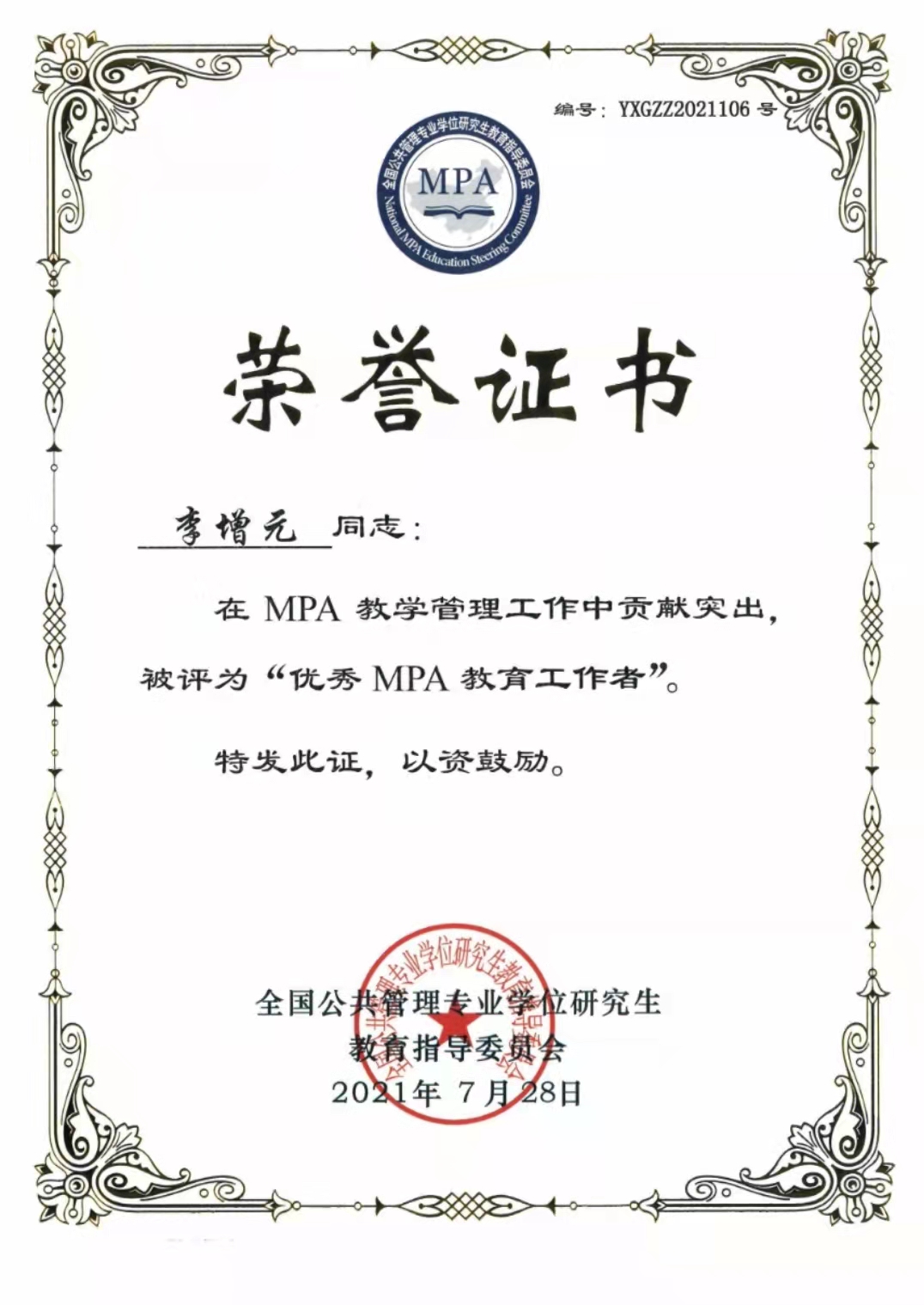 林士俊副教授荣获“优秀MPA教师”荣誉称号,李增元教授荣获“优秀MPA教育工作者”荣誉称号。本次获奖,是对两位教师教学水平和工作能力的高度认可,两位教师多年来致力于MPA教育工作,全面贯彻党的教育方针,落实立德树人根本任务,在MPA教学管理中积极探索MPA教育理念和发展特点,为色情论坛