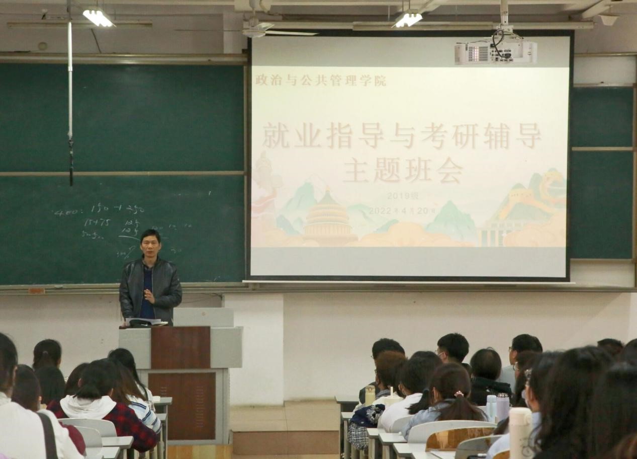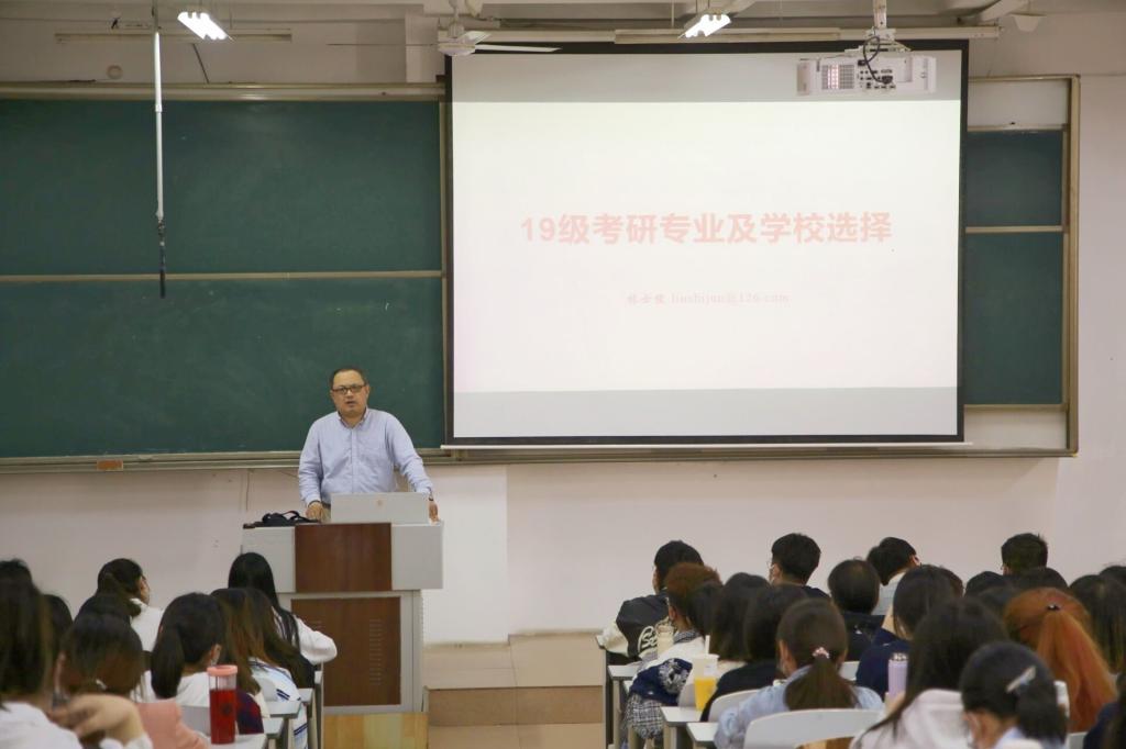 2019级就业指导与考研辅导主题班会于JA305召开,会议由辅导员王元如主持,副院长林士俊担任主讲,2019级全体同学积极与会。