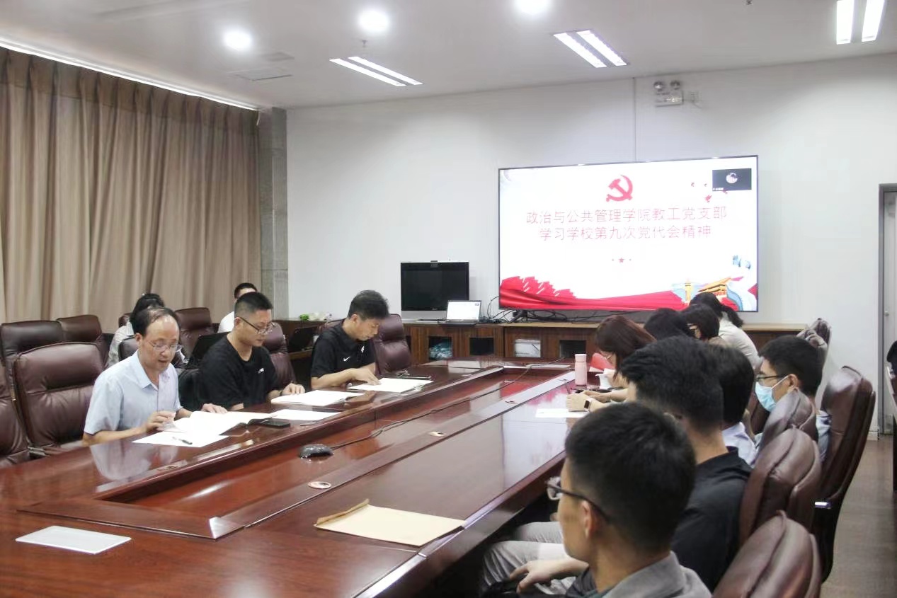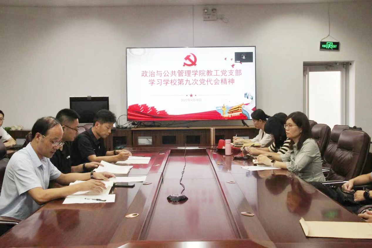 第九次党代会精神专题会。教工党支部全体教职工参加本次会议,本次会议由教工党支部书记林祥磊主持。
