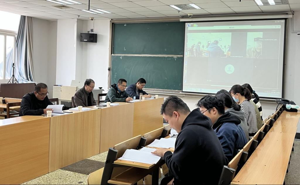 于JC605、JC603教室“线上”“线下”同时召开毕业论文中期考核报告会,学院各专业导师组成员出席会议,2020级全体硕士研究生参会。