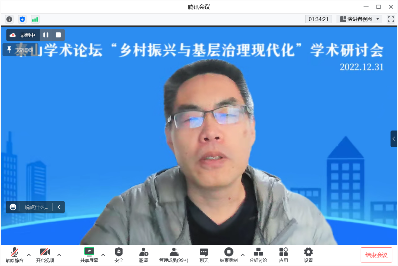 、乡村振兴与城乡基层治理研究中心承办,《齐鲁学刊》编辑部协办的“乡村振兴与基层治理现代化”泰山学术论坛于“腾讯会议”平台在线举行,来自中国社会科学院、清华大学、中国人民大学、南开大学、华中师范大学、武汉大学、浙江大学、安徽大学、西北农林科技大学以及色情论坛