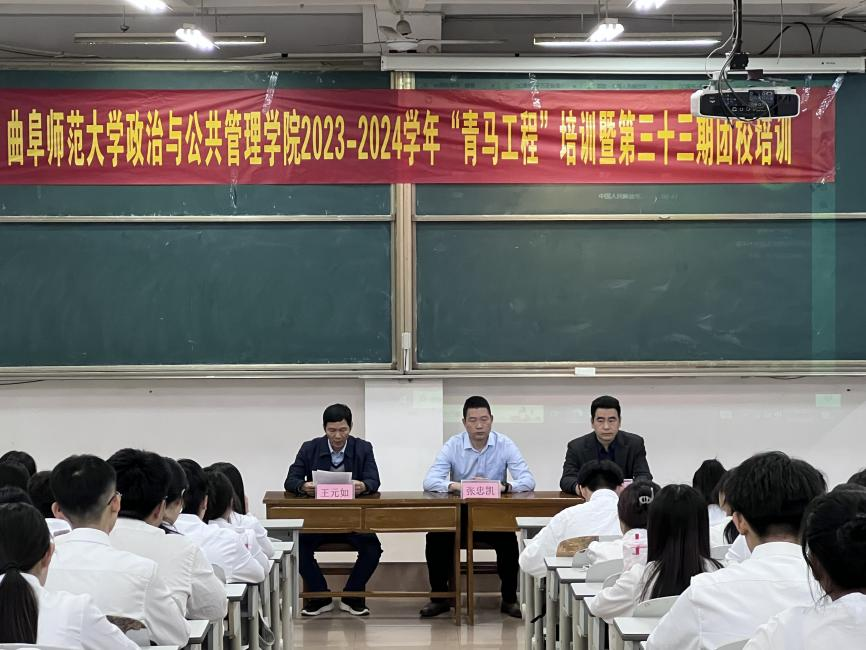 于JA106举办2023-2024学年“青马工程”培训暨第三十三期团校培训开班仪式。学院党委副书记张忠凯、学院党委组织员王元如出席活动,启明班和先锋班全体成员参加培训,开班仪式由学院团委书记马腾主持。