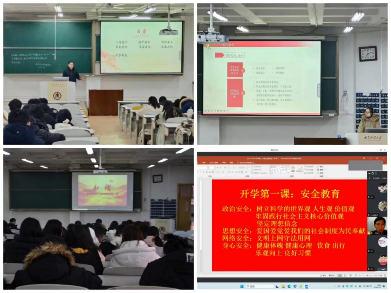 学院各年级通过线上线下相结合的方式召开安全开学“第一课”年级大会,主要围绕新学期规划、安全教育、学业目标和生活注意事项展开,为同学们指明了前进的方向。各年级辅导员均强调要将安全问题放在首位,叮嘱同学们要调整好开学心态与生活状态,制定适宜的新学期学习规划,积极参加各类实践活动,加强体育锻炼以此来丰富自己的校园生活。