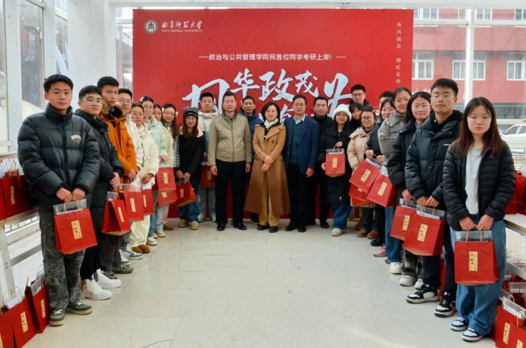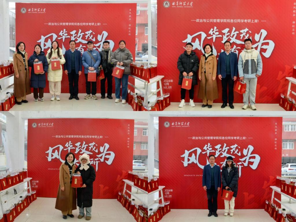 于D楼举行为考研学生送礼包活动。学院党委书记卢瑞霞、学院党委副书记、院长李增元和辅导员来到活动现场,为即将踏入考场的同学们送上暖心祝福。