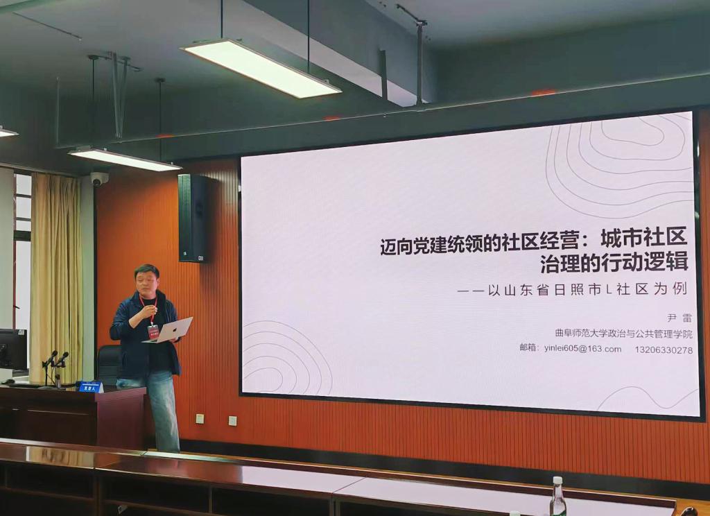 尹雷副教授主持青年论坛第四分论坛并作了题为《迈向党建统领的社区经营:新时期城市社区治理的行动自觉》的主旨发言,分享了日照市凌云社区通过强化基层党建,借由“悬浮破除”“情境适应”“统合共享”的治理改革实现基层党建统领社区经营的案例。分析得出,新时期“党建统领的社区经营”呈现出“党政到户”“单位在场”“空间叠化”的内在逻辑。强化基层党组织统合领导能力和社区服务事业兴办能力,成为新时期城市社区治理改革的关键之举。