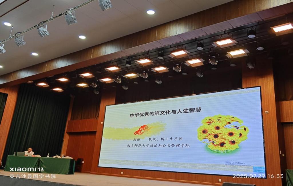 借助本次研讨会,喀什大学国学院与英吉沙国学书院、喀什地区社会科学界联合会、喀什地区教师培训中心在英吉沙国学书院共同举办国学教育讲座,刘伟教授应邀以《中华优秀传统文化与人生智慧》为题作了学术讲座,受到普遍好评。