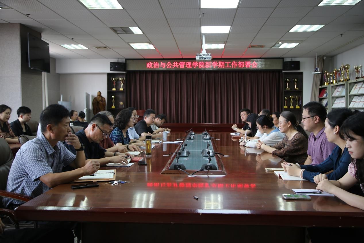 于JC909召开新学期工作部署会,全体教职工参会,会议由学院党委书记卢瑞霞主持。