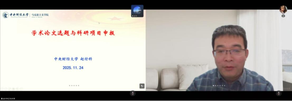 乾元沙龙·第十八期学术讲座于线上顺利举行。本次活动邀请中央财经大学马克思主义学院教授、《高校马克思主义理论教育研究》杂志常务副主编赵付科担任主讲。本次活动由秦绪娜教授主持,学院青年教师与研究生积极参加。