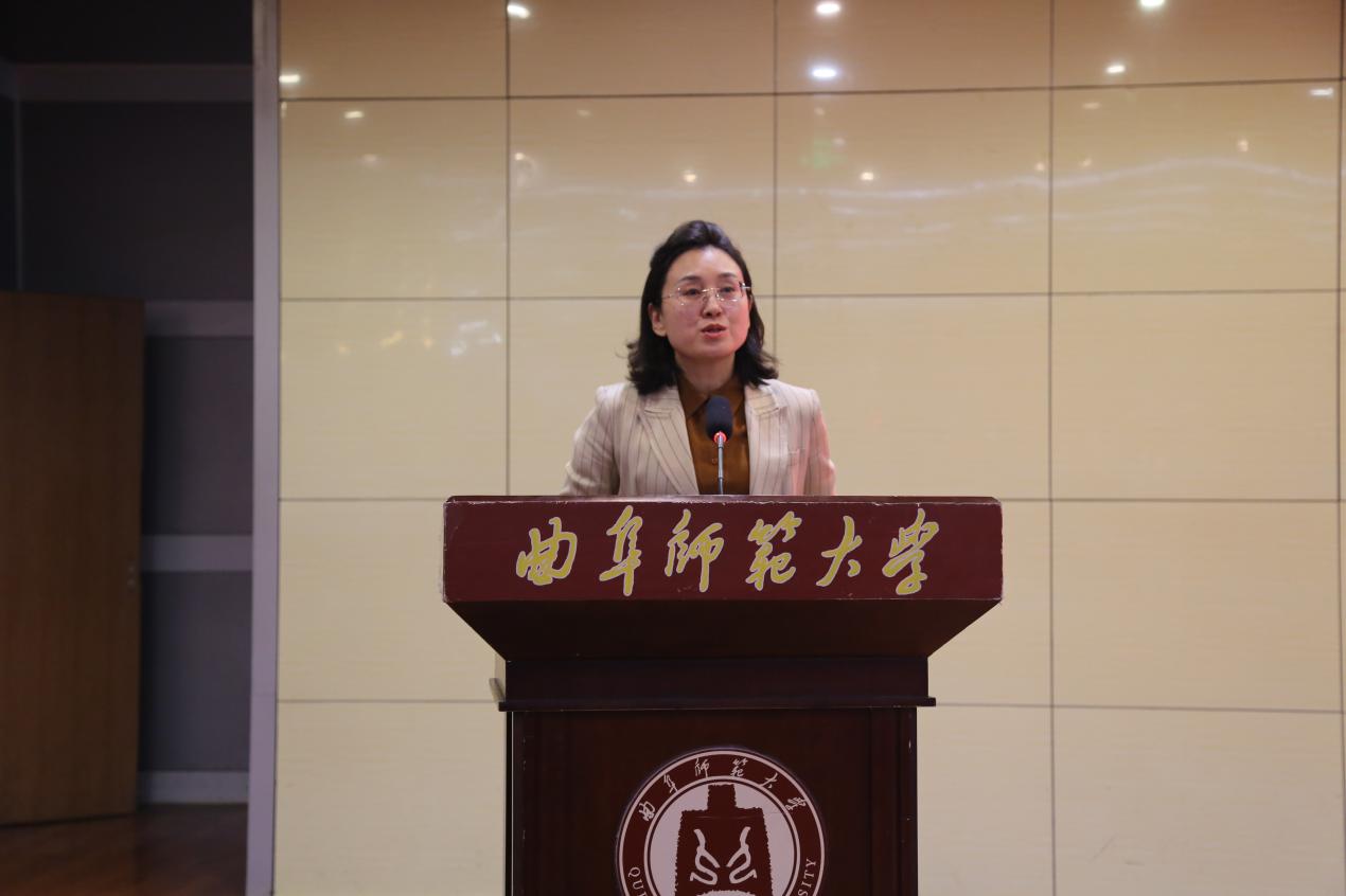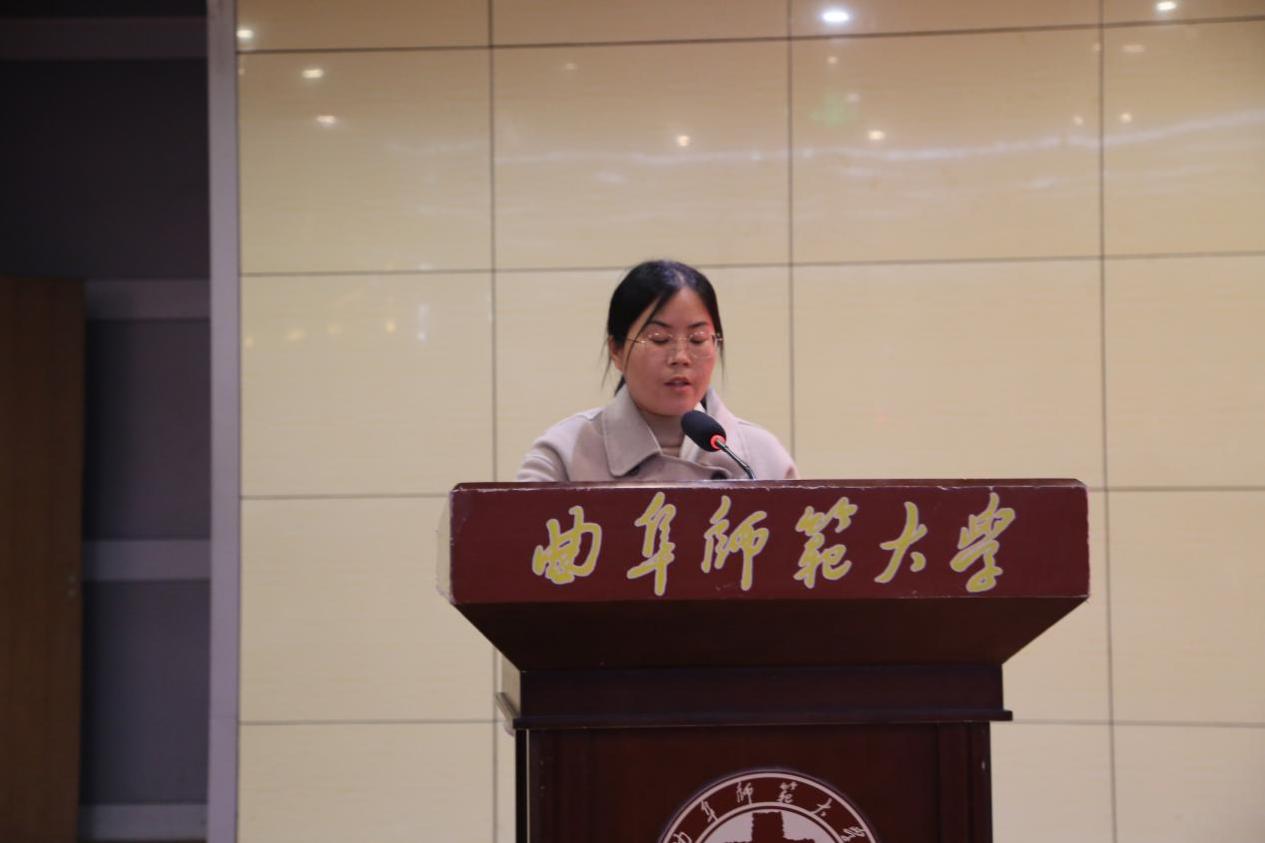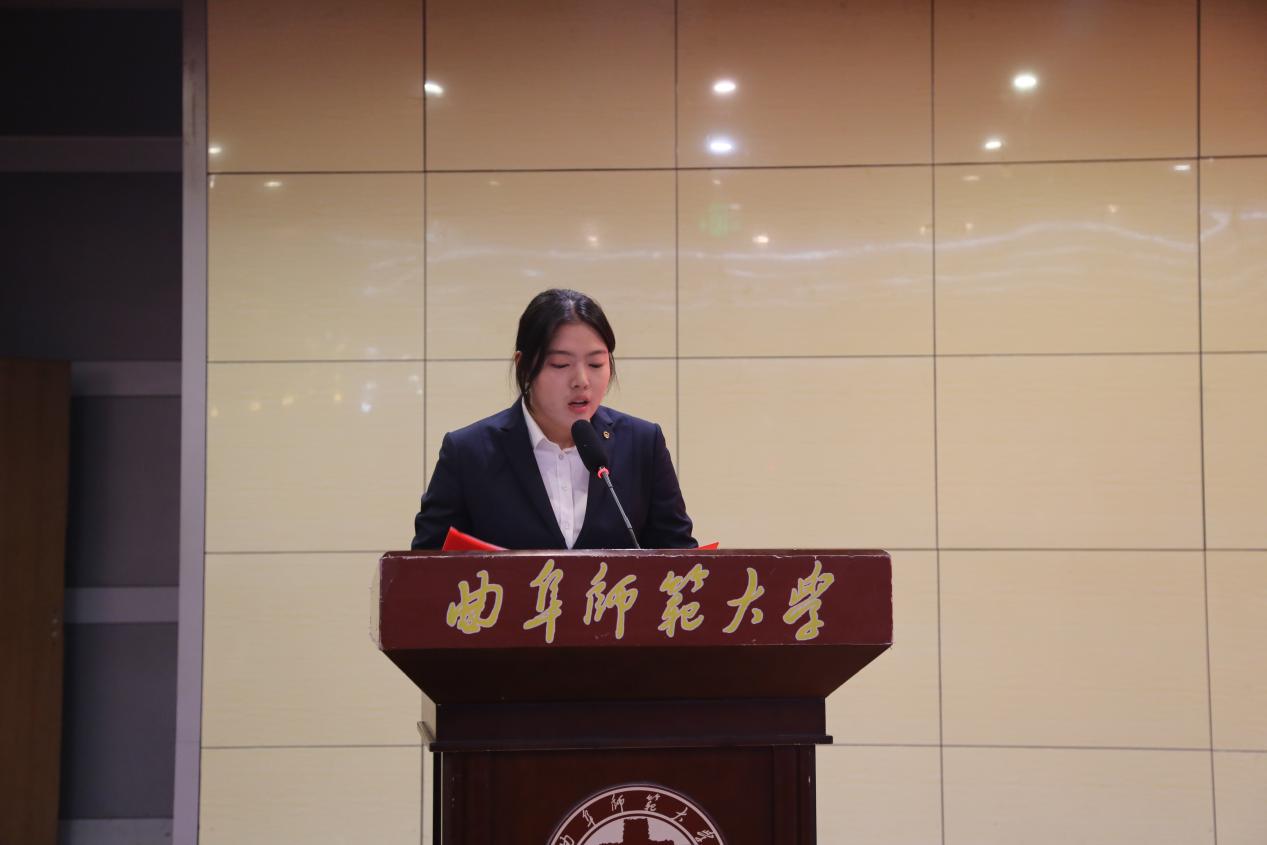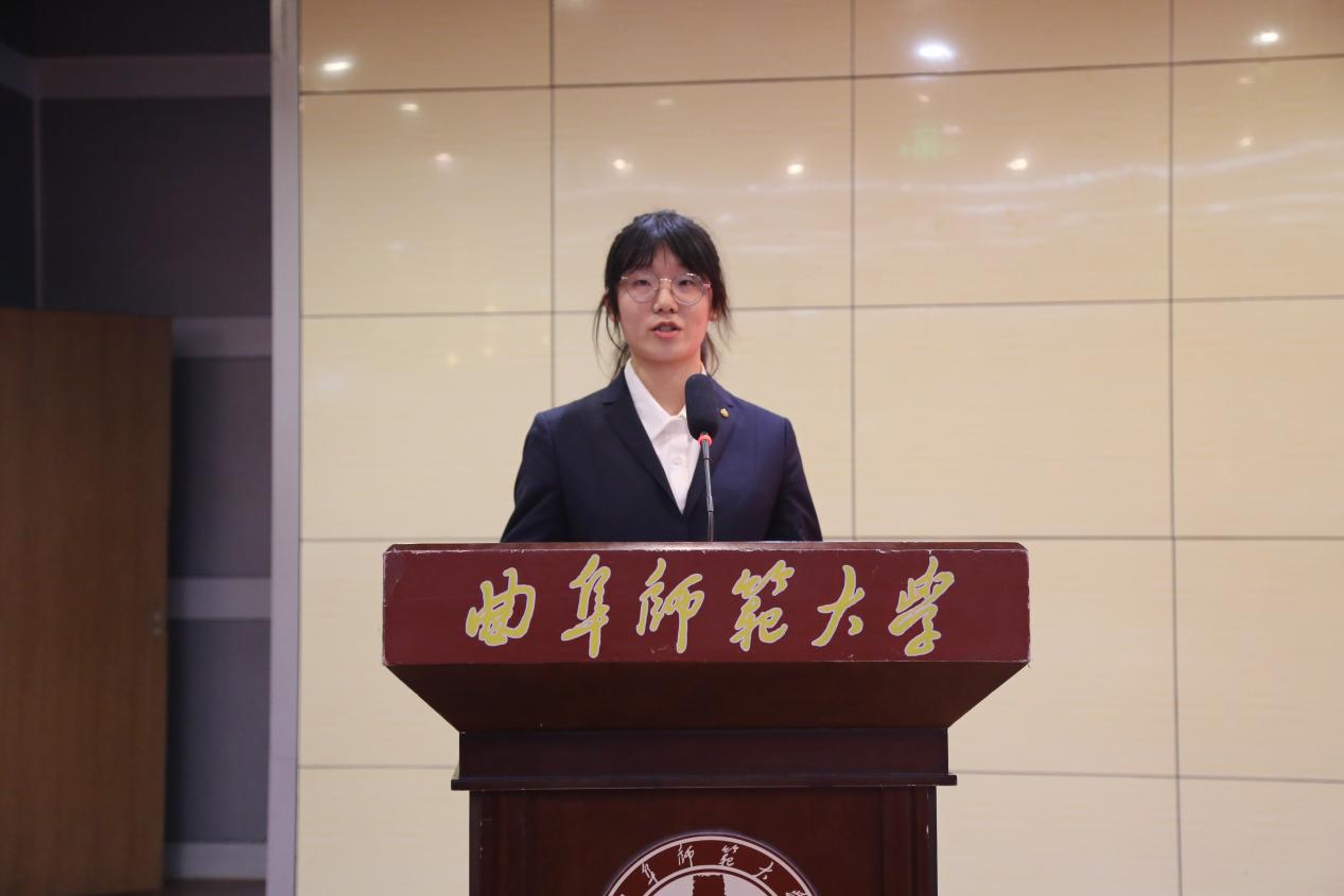 优秀实习生代表王佳音同学分享了在莒县团县委的实习经历,讲述了从校园到职场的适应与蜕变,表达了对学院与实习单位的感恩之情。